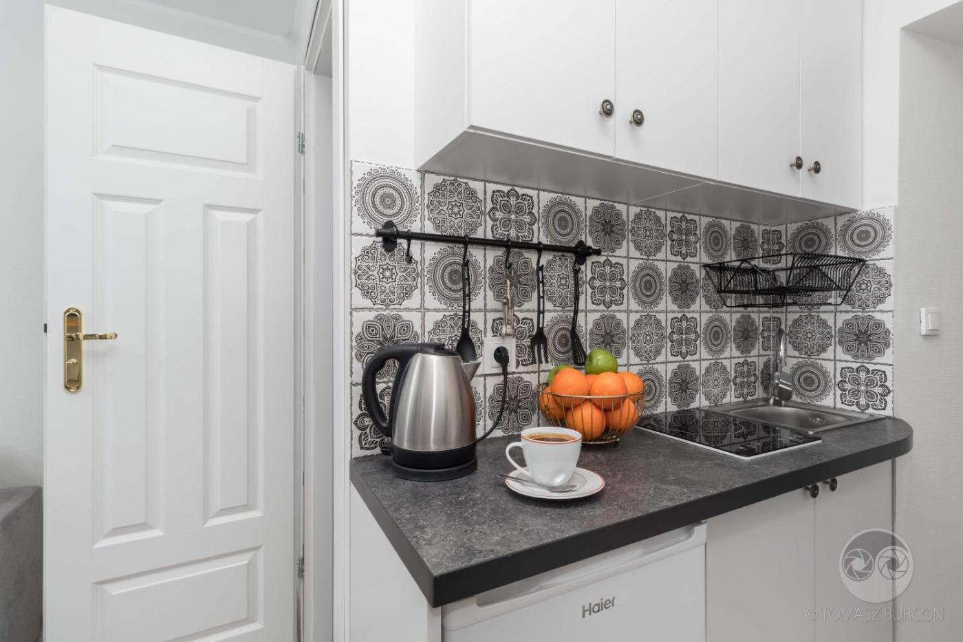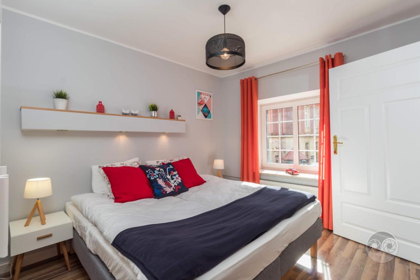 Apartament z 1 sypialnią. This apartment includes 1 living room, 1 separate bedroom and 1 bathroom with a shower. The apartments kitchenette, which has a stovetop and a refrigerator, is available for cooking and storing food. The apartment offers a wardrobe, an electric kettle, a sofa, heating, as well as a TV with cable channels. The unit has 2 beds. Apartament - 5 osobowy. Powierzchnia pokoju ok.: 30 mkw.