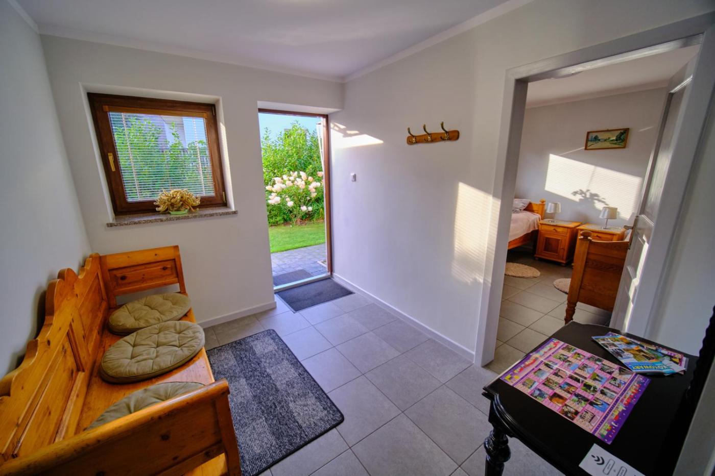 Apartament z 3 sypialniami. Boasting a private entrance, this apartment comes with 1 living room, 3 separate bedrooms and 1 bathroom with a walk-in shower and a hairdryer. Guests will find a stovetop, a refrigerator, kitchenware and an oven in the well-equipped kitchen. The apartment also includes a barbecue. Featuring a terrace with garden views, this apartment also features a tea and coffee maker and a flat-screen TV. The unit has 5 beds. Apartament - 7 osobowy. Powierzchnia pokoju ok.: 50 mkw.