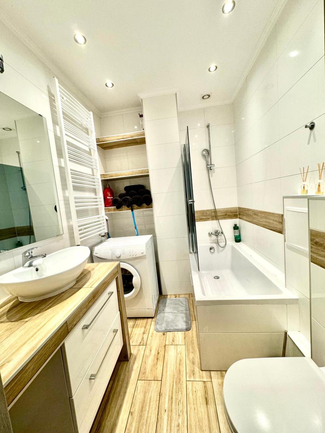 Apartament z balkonem. Featuring a private entrance, this apartment consists of 1 living room, 1 separate bedroom and 1 bathroom with a bath and a hairdryer. The well-fitted kitchenette features a stovetop, a refrigerator, a dishwasher and kitchenware. The apartment has parquet floors, a seating area with a flat-screen TV, a washing machine, a tea and coffee maker as well as a quiet street view. The unit offers 2 beds. Apartament - 4 osobowy. Powierzchnia pokoju ok.: 45 mkw.