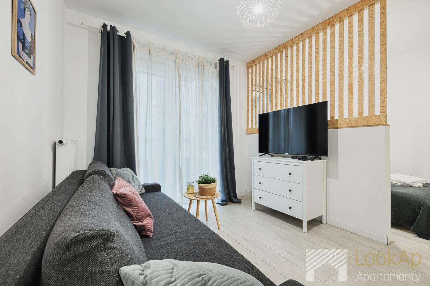 Apartament typu studio. This apartment comprises 1 living room, 1 separate bedroom and 1 bathroom with a shower and a hairdryer. Guests can make meals in the kitchen that comes with a stovetop, a refrigerator, kitchenware and an oven. Featuring a patio, this apartment also provides a washing machine, a tea and coffee maker and a flat-screen TV. The unit offers 2 beds. Apartament - 4 osobowy. Powierzchnia pokoju ok.: 31 mkw.