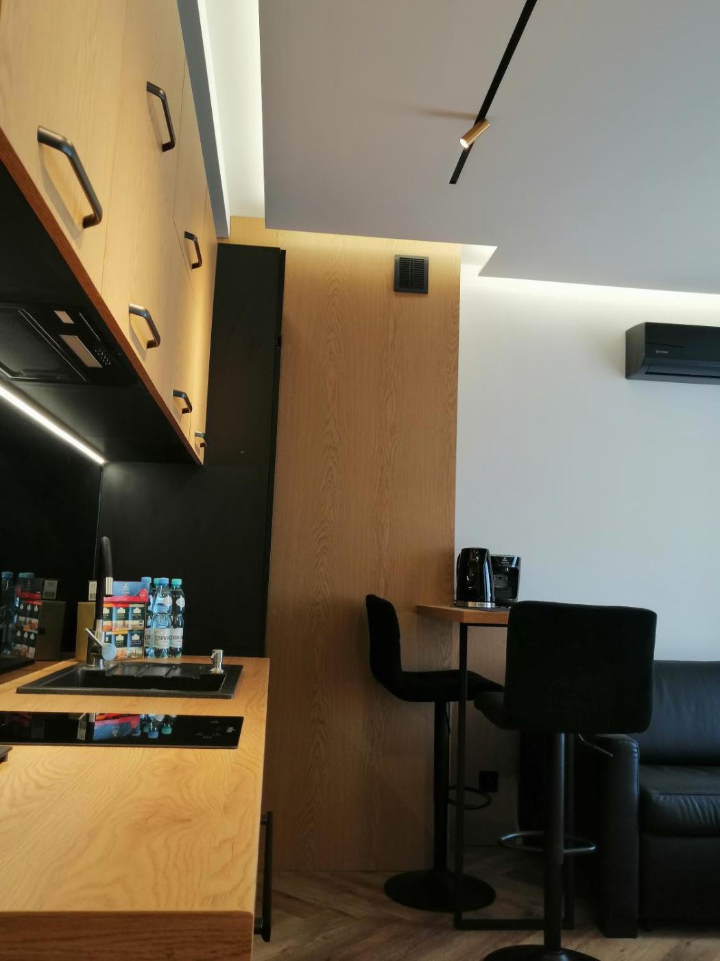 Oferta apartamentu obejmuje sypialnię (1), salon, kuchnię z pełnym wyposażeniem, w tym lodówką i ekspresem do kawy, a także łazienkę (1) z prysznicem oraz suszarką do włosów. W apartamencie zapewniono ręczniki i pościel.