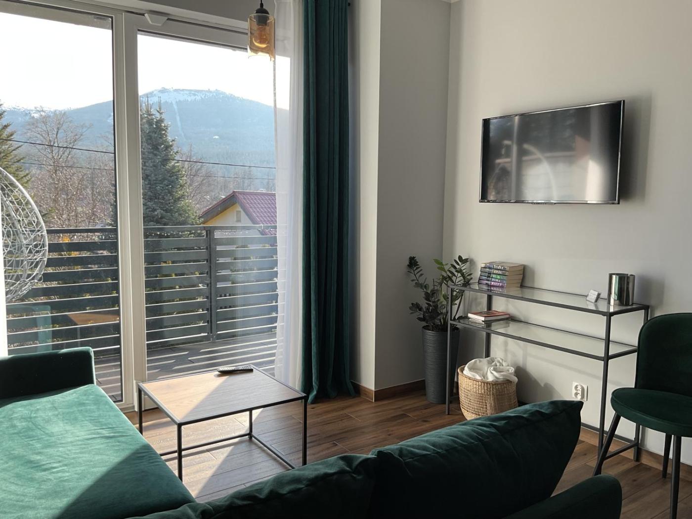 Obiekt Z Widokiem Apartamenty - apartamenty z widokiem na góry i zewnętrzną balią położony jest w miejscowości Szklarska Poręba w regionie dolnośląskie i oferuje bezpłatne Wi-Fi, sprzęt do grillowania, ogród oraz bezpłatny prywatny parking. Odległość ważnych miejsc od obiektu: PKS Szklarska Poręba – 1,1 km.