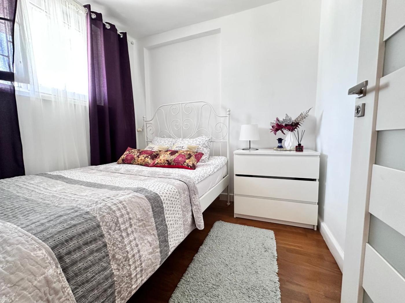 Apartament z 2 pokojami. This apartment comprises a kitchen, a seating area, 2 separate bedrooms and 1 bathroom with a shower and a hairdryer. Meals can be prepared in the well-fitted kitchen, which comes with a stovetop, a refrigerator, kitchenware and an oven. The apartment provides a flat-screen TV with streaming services, a washing machine, soundproof walls, a tea and coffee maker as well as city views. The unit offers 3 beds. Apartament - 6 osobowy. Powierzchnia pokoju ok.: 38 mkw.